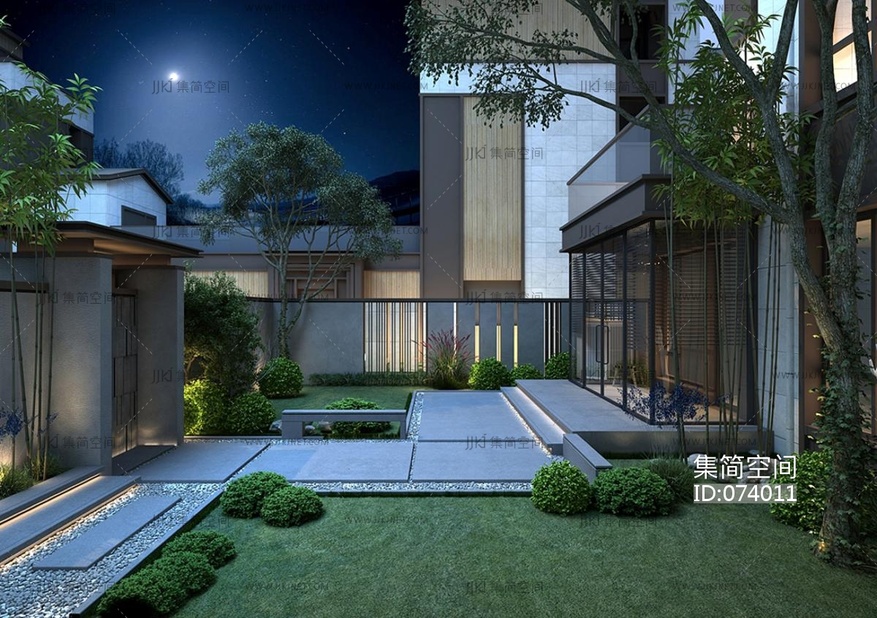 11现代新中式别墅景观庭院 3d模型下载 [模型ID:74011]