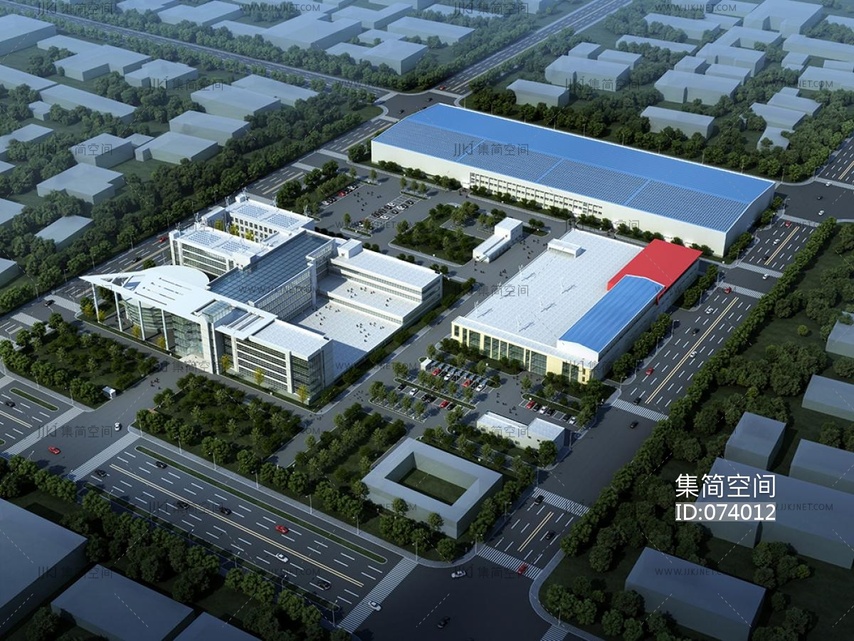 12现代工业区厂房景观鸟瞰树马路汽车规划配景 3d模型下载 [模型ID:74012]