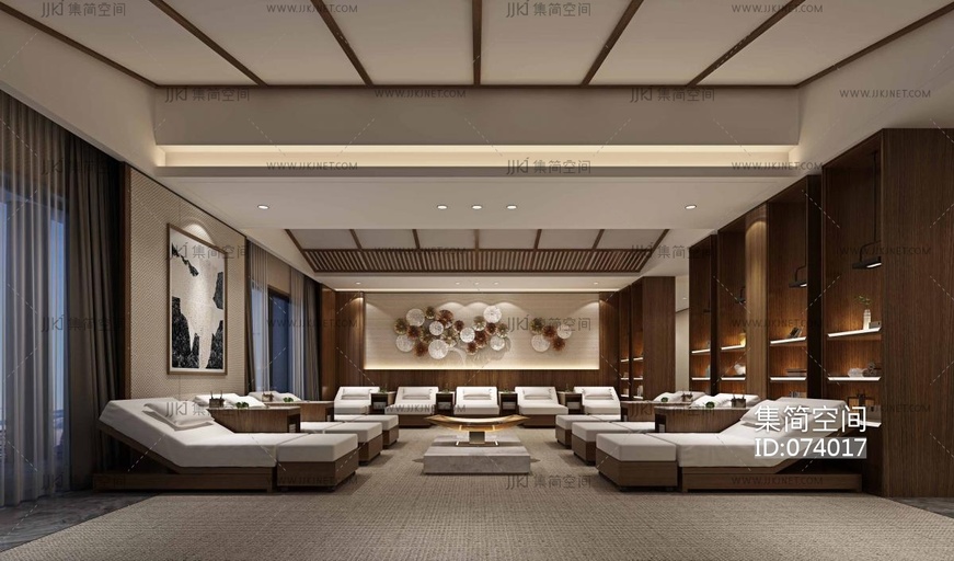17会所休息区休息大厅按摩床足疗床墙饰挂饰 3d模型下载 [模型ID:74017]