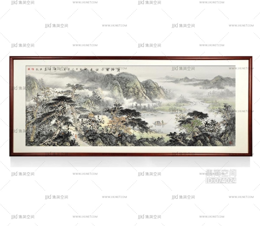千里江山山水装饰画 山水画贴图材质贴图下载