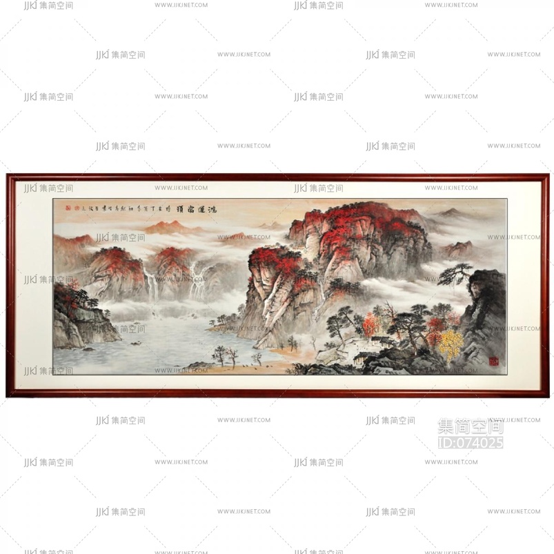 千里江山山水装饰画 山水画贴图材质贴图下载