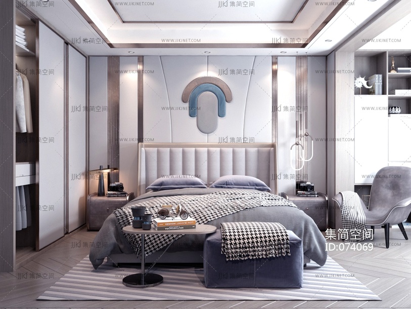 2-1现代轻奢卧室 3d模型下载 [模型ID:74069]
