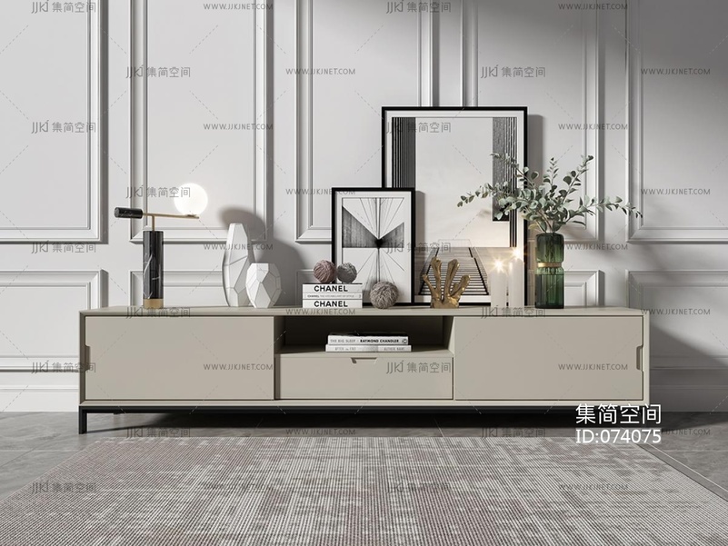 31现代电视柜摆件组合 3d模型下载 [模型ID:74075]