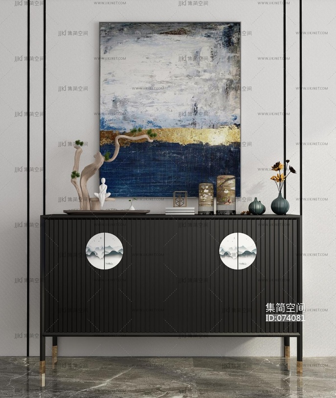 37新中式餐边柜玄关柜摆台摆件 3d模型下载 [模型ID:74081]