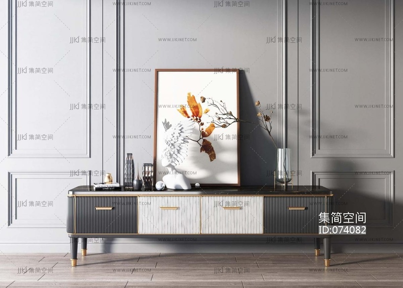 38现代轻奢简欧式电视柜摆件组合 3d模型下载 [模型ID:74082]