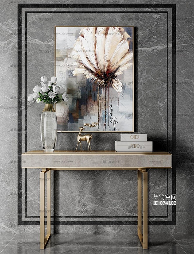 美式玄关柜摆台装饰画3D模型下载3d模型下载