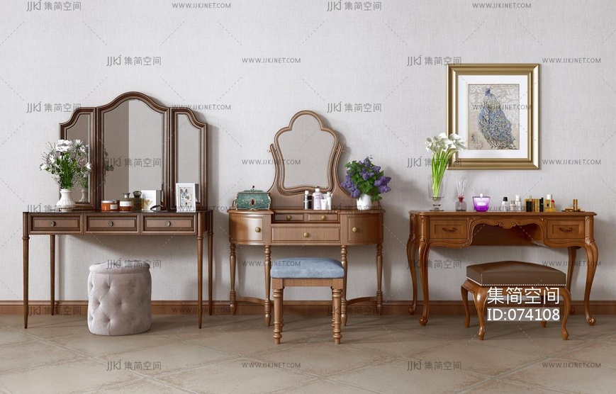 65美式欧式法式梳妆台化妆台花瓶摆件 3d模型下载 [模型ID:74108]