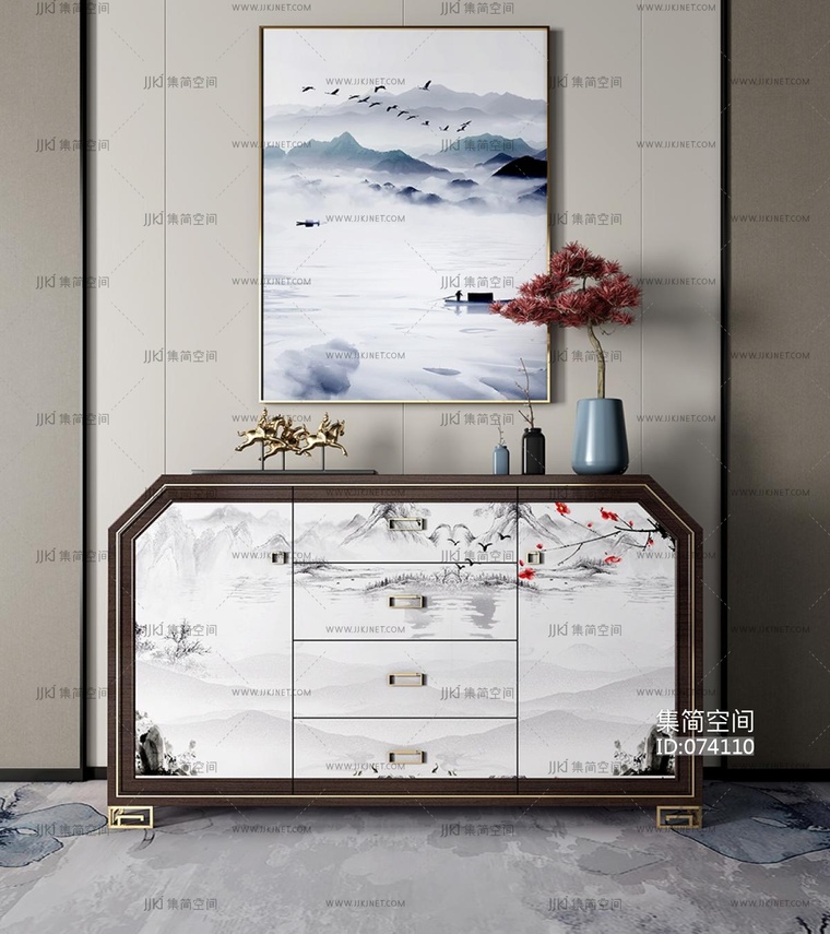 67新中式玄关柜边柜端景台花瓶 3d模型下载 [模型ID:74110]
