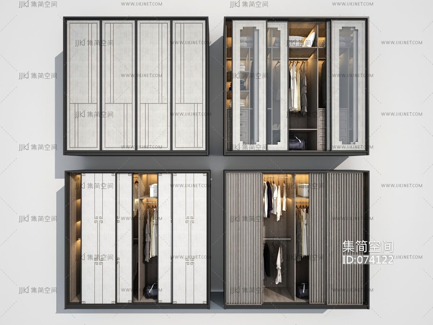 100新中式衣柜 3d模型下载 [模型ID:74122]