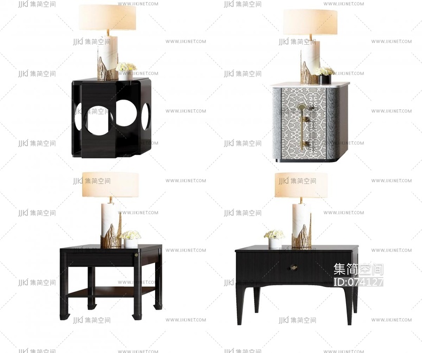 106新中式电视柜边柜台灯 3d模型下载 [模型ID:74127]