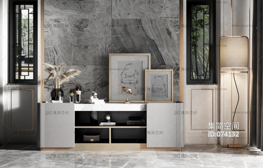 15现代轻奢电视柜边柜落地灯花瓶摆件 3d模型下载 [模型ID:74132]
