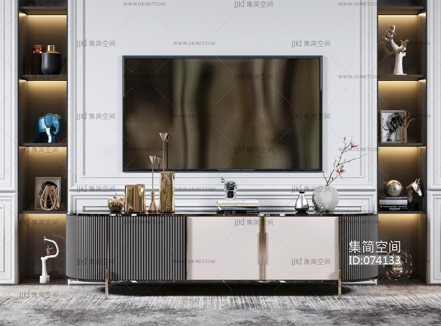现代轻奢电视柜背景墙花瓶摆件 3d模型下载 [模型ID:74133]