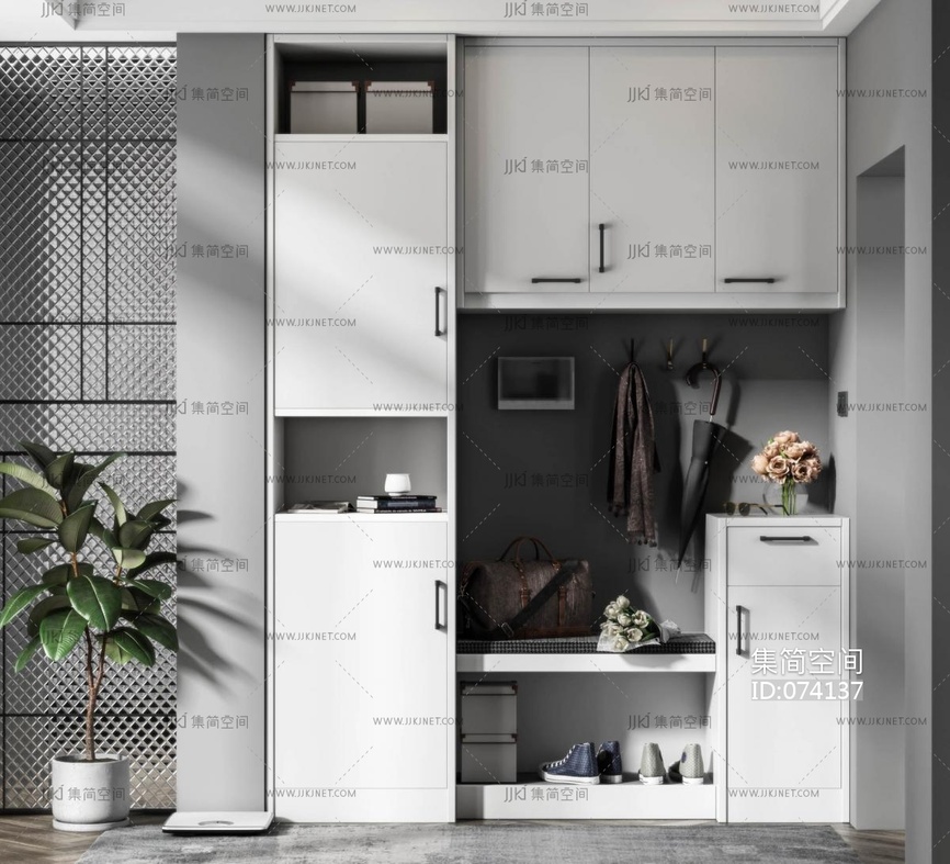 现代玄关换鞋柜衣橱 3d模型下载 [模型ID:74137]