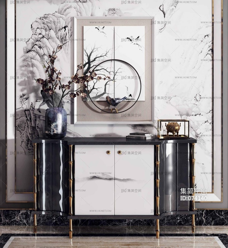 新中式玄关柜 3d模型下载 [模型ID:74140]