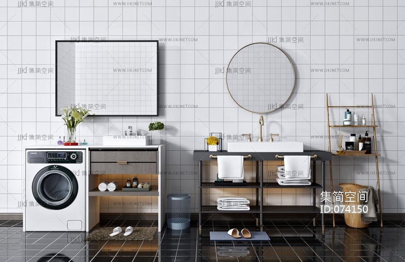 现代阳台洗手台浴室柜 3d模型下载 [模型ID:74150]