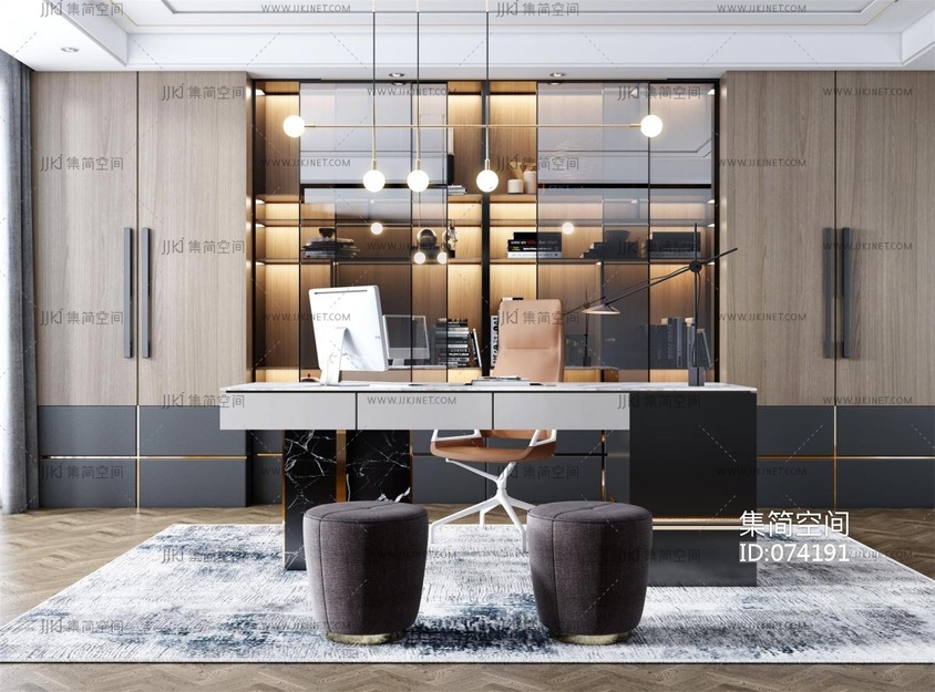 现代轻奢书房 3d模型下载 [模型ID:74191]