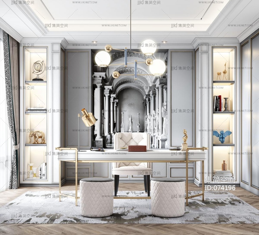 现代书房,书桌椅,书柜亚克力座椅,3d模型下载