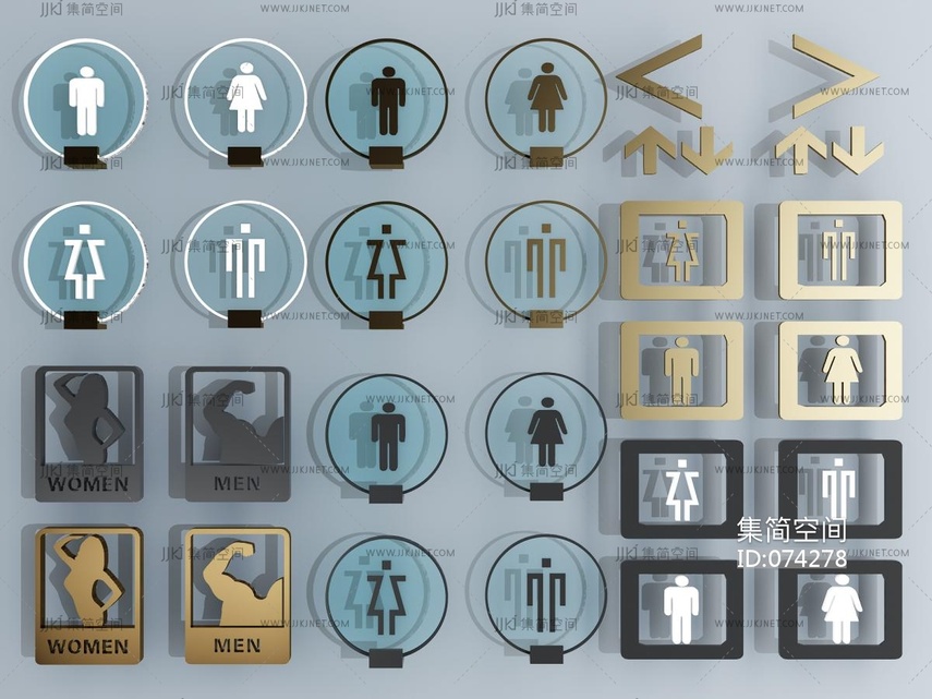 卫生间标识牌指示牌 3d模型下载 [模型ID:74278]