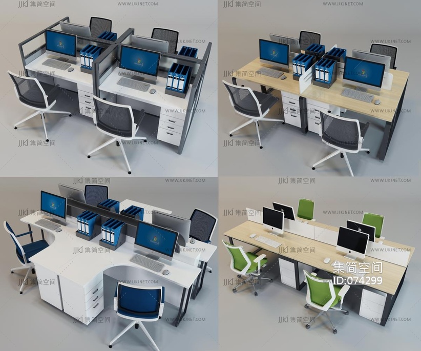 现代办公桌_办公位_工作桌_办公椅_文件柜_屏风_高柜_办公室3D模型3d模型下载