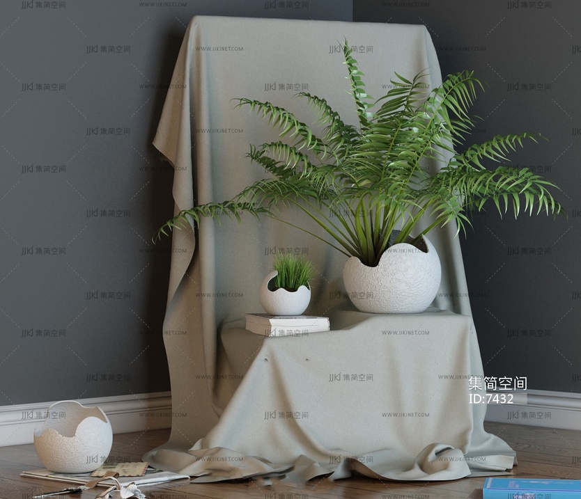 现代托盘摆件苔藓书籍书本酒店用品装饰组合3D模型3d模型下载