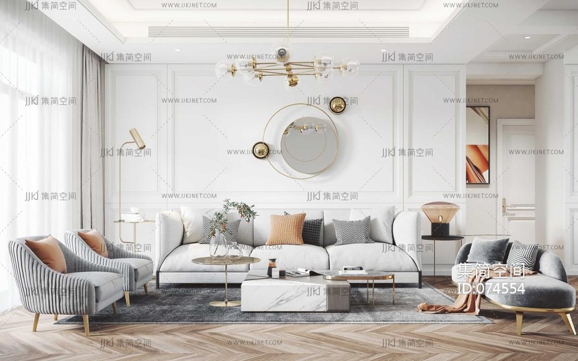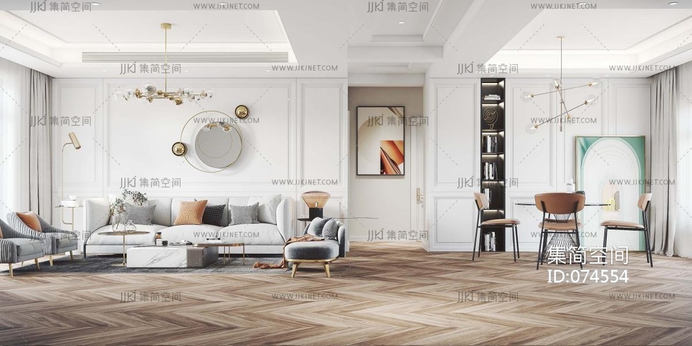 现代轻奢简欧式客餐厅 3d模型下载 [模型ID:74554]