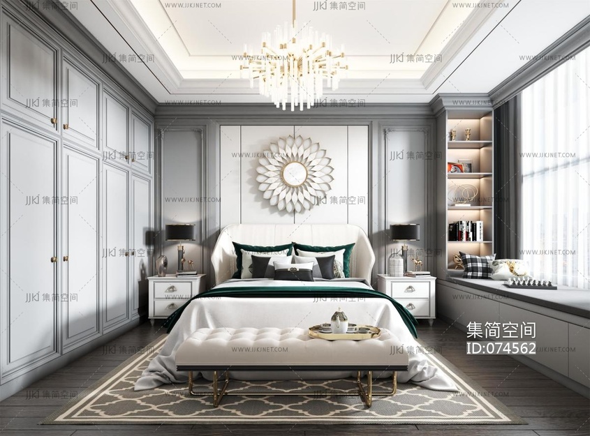 简欧式卧室 3d模型下载 [模型ID:74562]