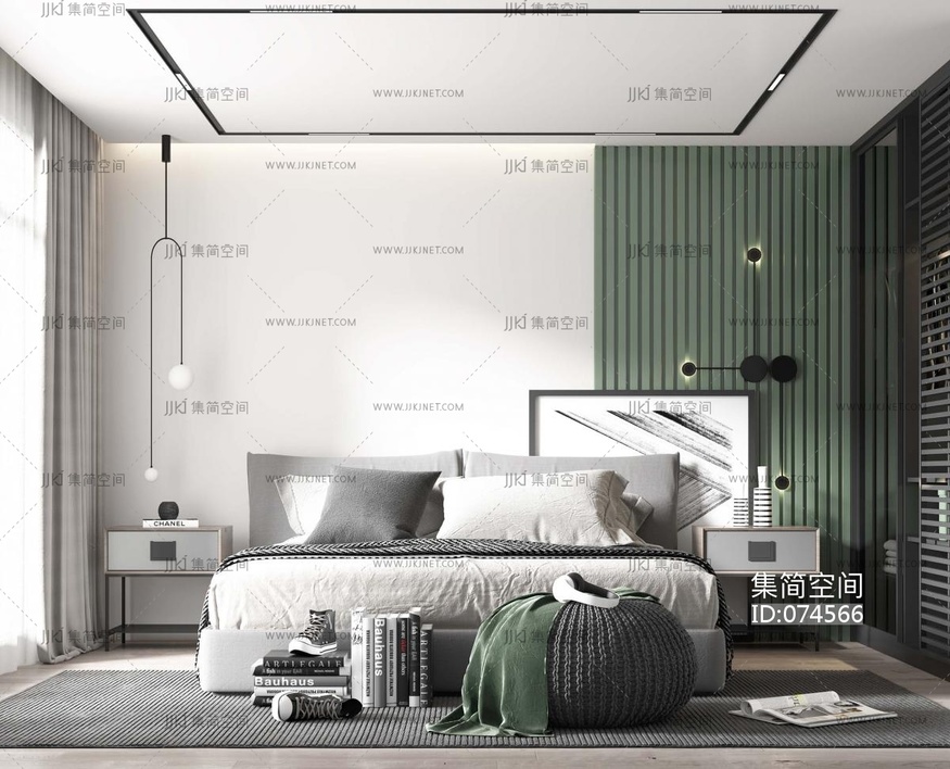 现代卧室,双人床床头柜 3d模型下载 [模型ID:74566]
