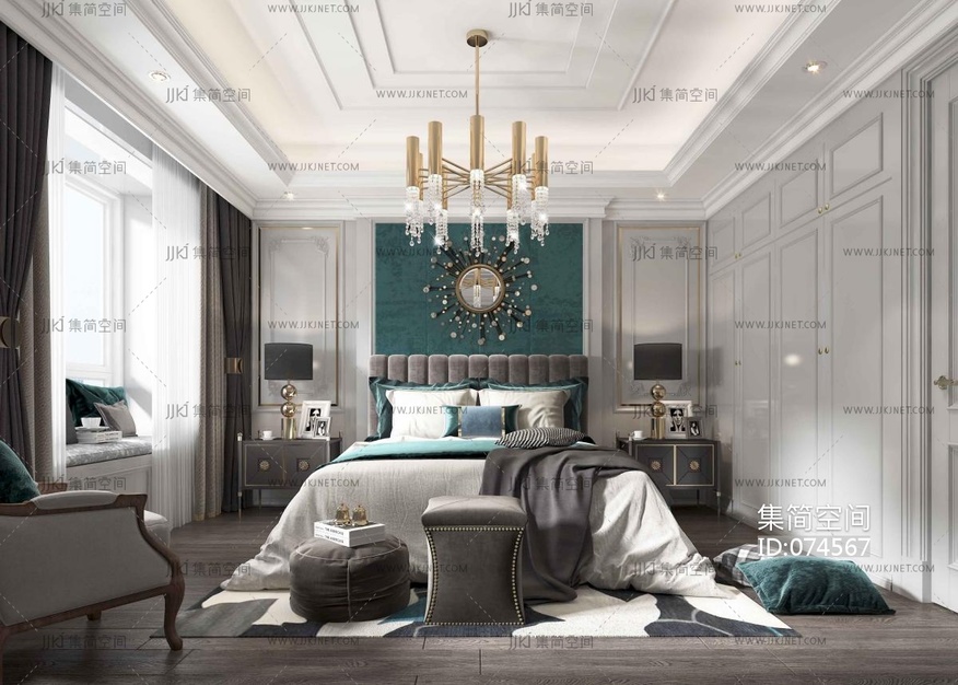6法式中古家居卧室_主卧_飘窗卧室_高级灰卧室3D模型cr3d模型下载