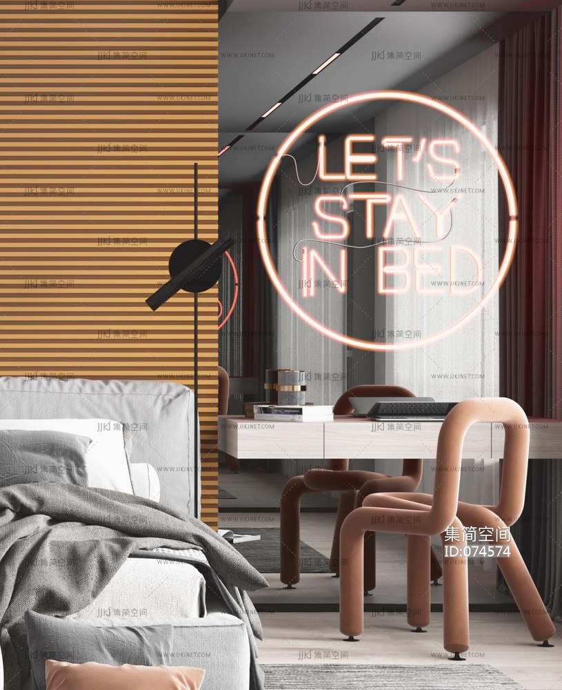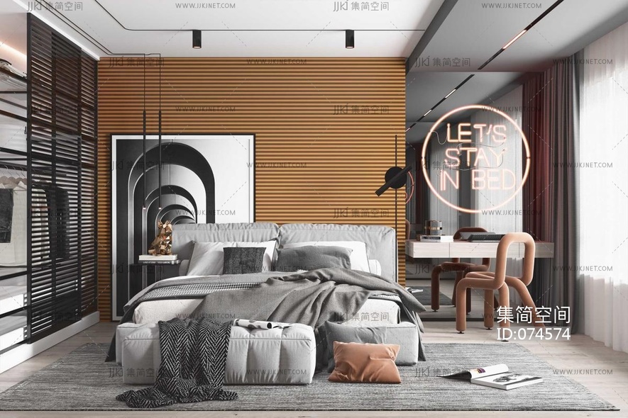 北欧现代卧室 3d模型下载 [模型ID:74574]