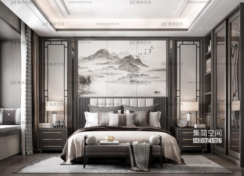 新中式卧室 3d模型下载 [模型ID:74576]
