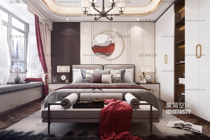 新中式卧室 3d模型下载 [模型ID:74577]