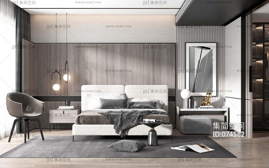 现代卧室 3d模型下载 [模型ID:74582]