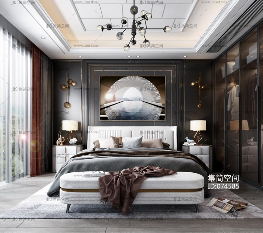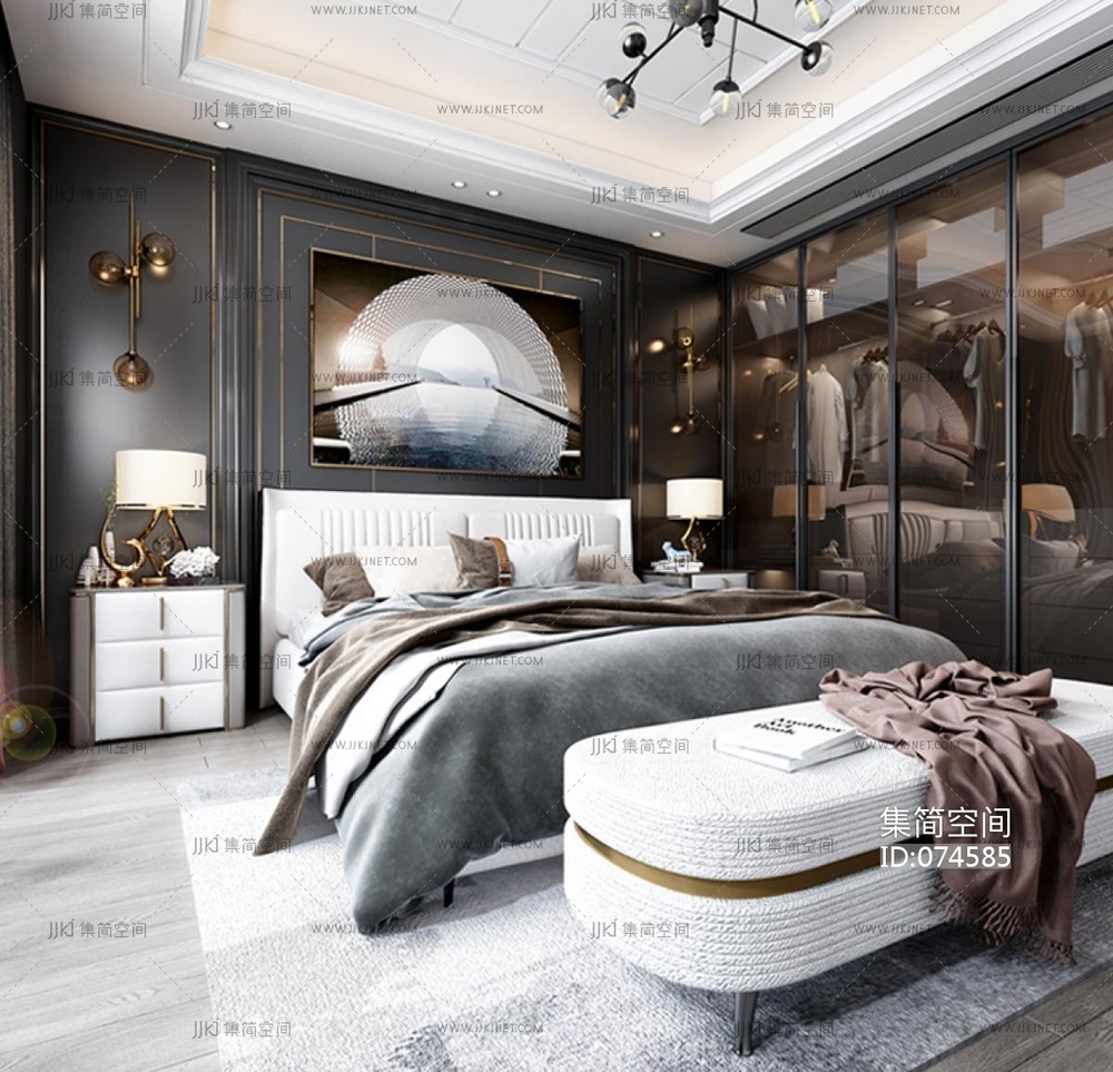 简欧式 卧室 3d模型下载 [模型ID:74585]