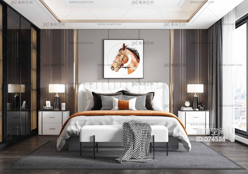 现代轻奢简欧式卧室 3d模型下载 [模型ID:74586]
