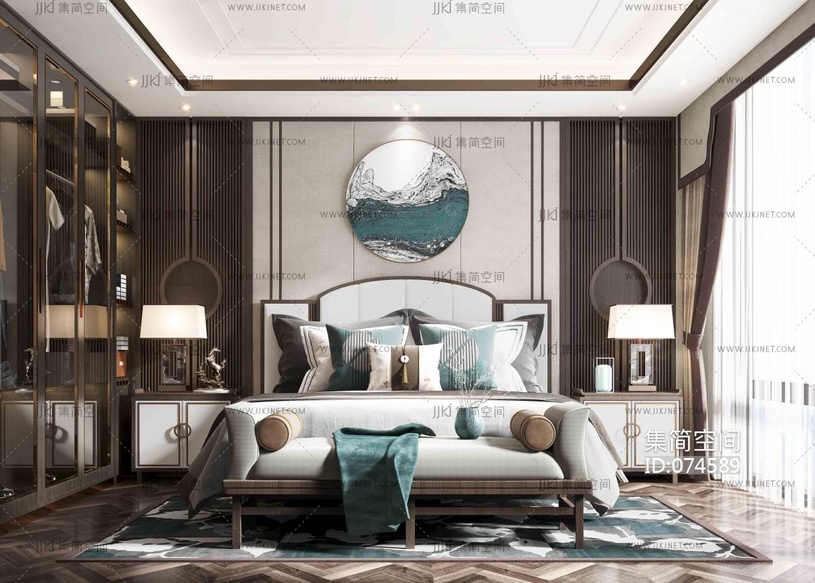 新中式主人房卧室 3d模型下载 [模型ID:74589]