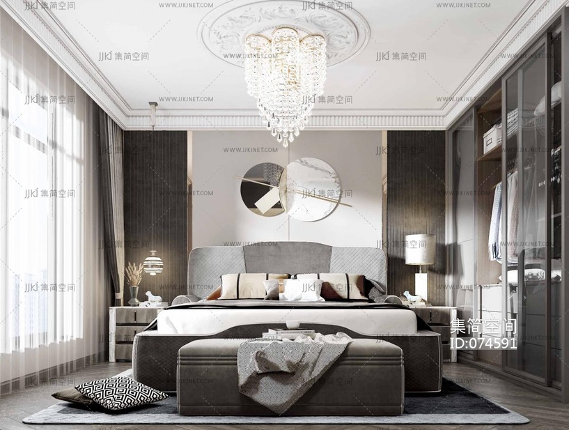 6法式中古家居卧室_主卧_飘窗卧室_高级灰卧室3D模型cr3d模型下载