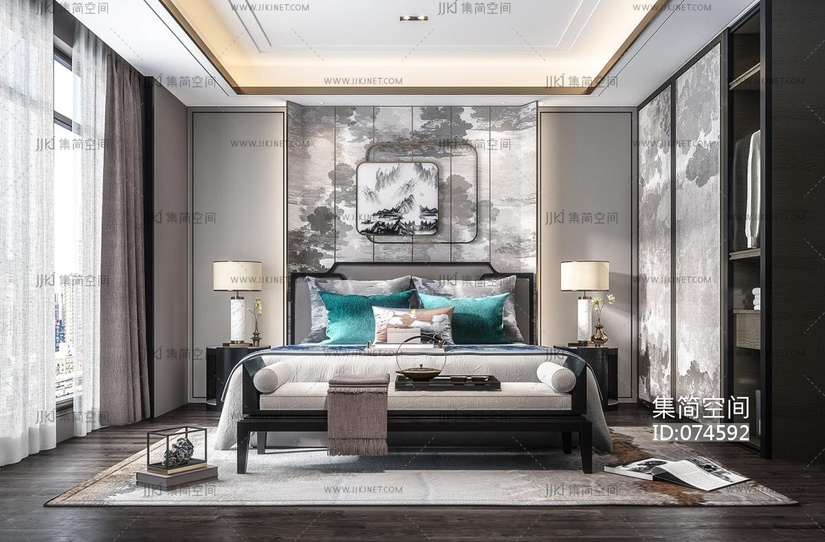 新中式卧室 3d模型下载 [模型ID:74592]