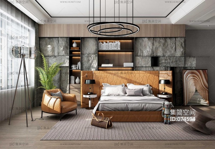 现代简约风格主卧室 3d模型下载 [模型ID:74594]