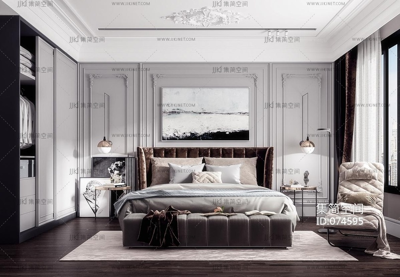 北欧轻奢卧室 3d模型下载 [模型ID:74595]