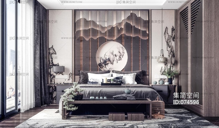 卧室,轻奢,暗黑风,现代轻奢卧室双人床,懒人沙发法式卧室3d模型下载