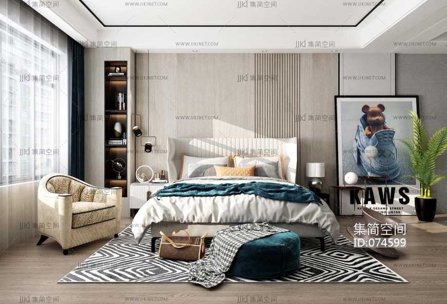 现代简约风格主卧室 3d模型下载 [模型ID:74599]