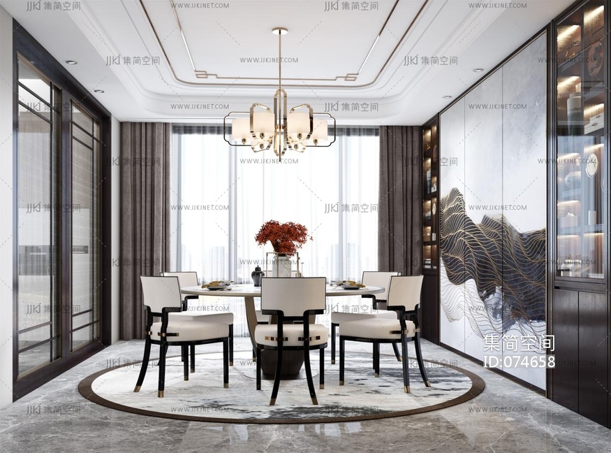 14新中式圆形餐桌椅子,餐厅 3d模型下载 [模型ID:74658]