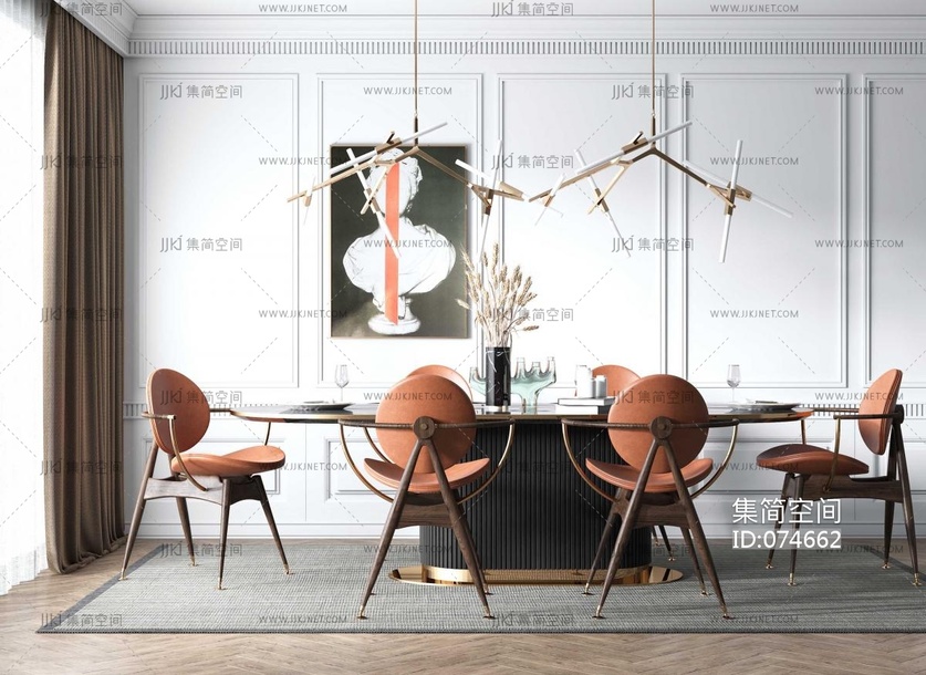 现代简欧式轻奢餐厅,餐桌椅 3d模型下载 [模型ID:74662]