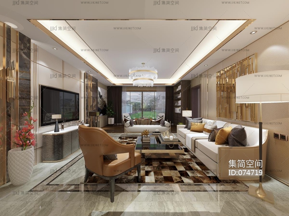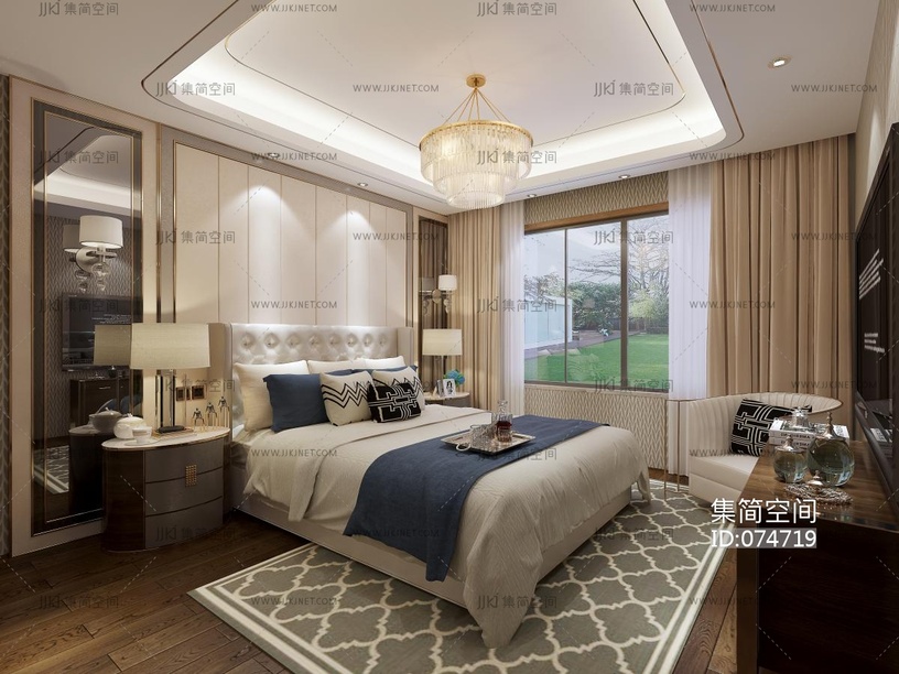 简欧式客厅,卧室,双人床 3d模型下载 [模型ID:74719]