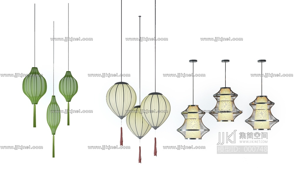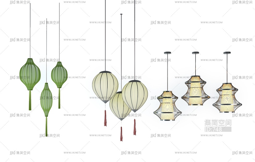 新中式吊灯灯笼, 3d模型下载 [模型ID:748]