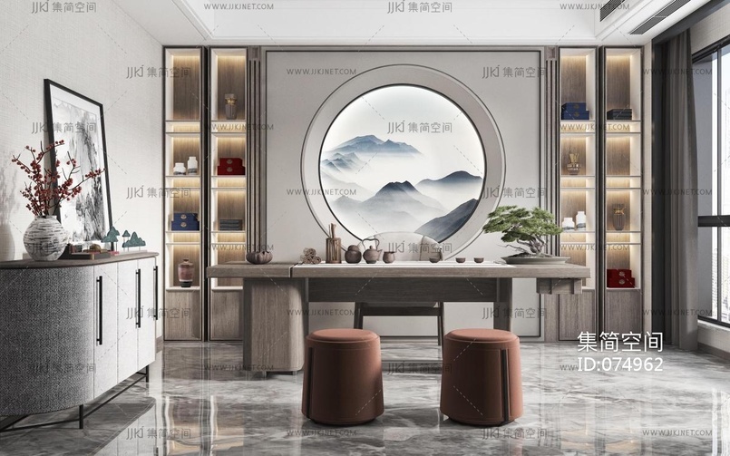 现代书房 书桌椅 壁柜 挂画 吊灯 书 盆栽 摆件3d模型下载