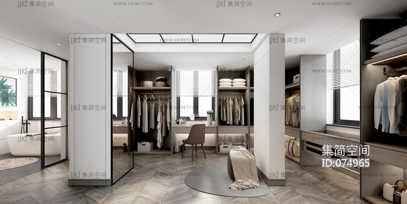 现代衣帽间,衣橱,衣柜 3d模型下载 [模型ID:74965]
