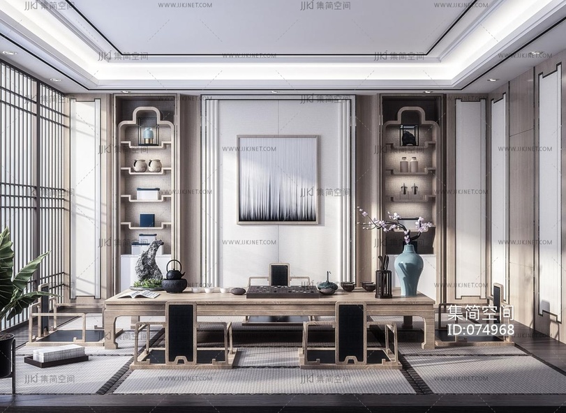 新中式禅意榻榻米茶室 3d模型下载 [模型ID:74968]