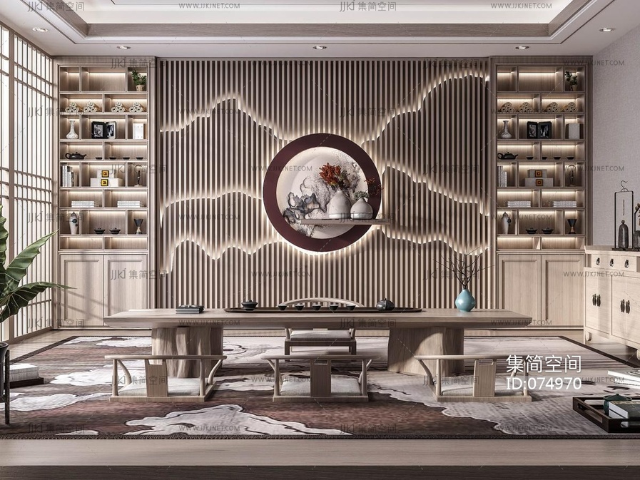 新中式榻榻米禅意茶室 3d模型下载 [模型ID:74970]