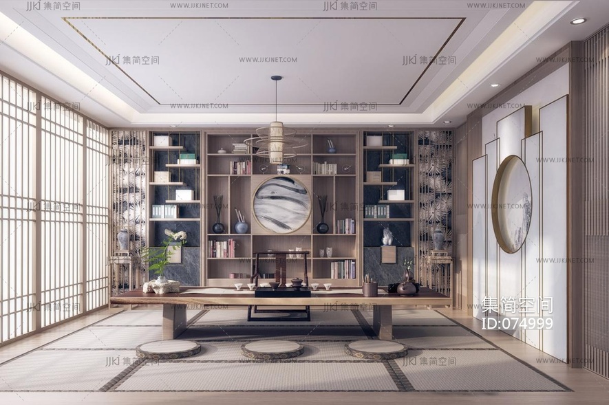 新中式日式榻榻米茶室,茶桌椅, 3d模型下载 [模型ID:74999]